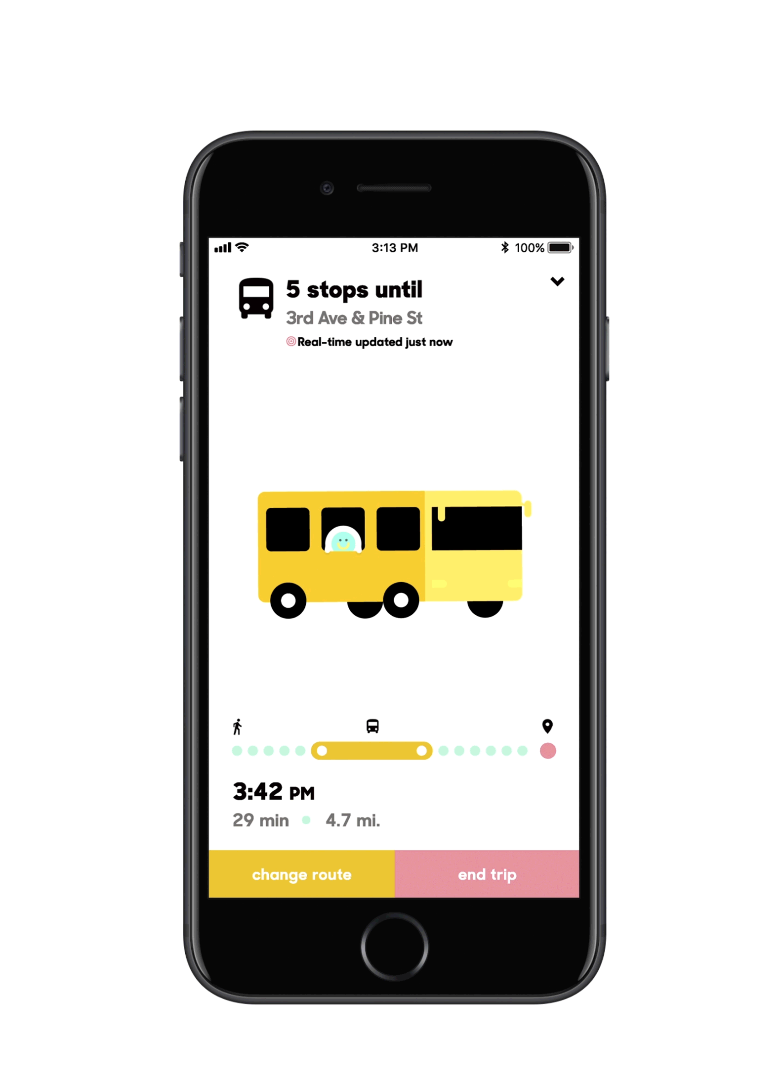 The cozie character originally made its debut on a few post it notes, and eventually after many iterations I landed on the characters seen above . It became apparent that the riders had preconceptions of how public transportation applications looked and felt. We examined the impersonal aspects of the available applications. I began crafting the personable component to our language, based on these impersonal aspects.